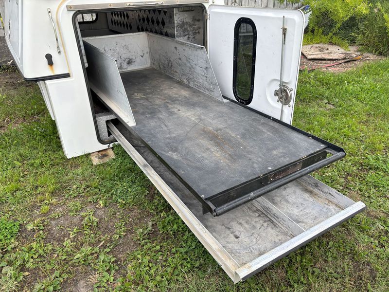 8 Foot service body truck cap with two slides and ladder rack. This will fit any 8 foot truck box. We can load it for you as well. In great shape with light usage.